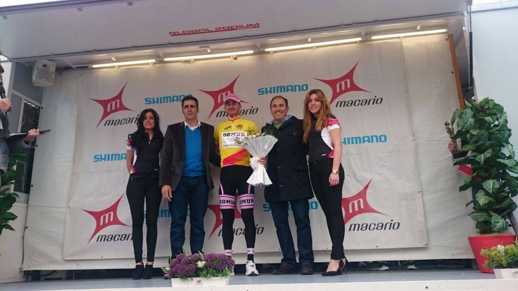 Nacho Pérez, con el maillot de lider de Copa España compartiendo podio con el pentacampeon del Tour de Francia, Miguel Indurain © FB Gomur