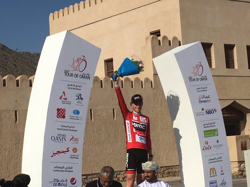 Hermans, luciendo el maillot rojo de líder © Tour Omán