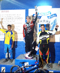 Alejandro Kim, en el primer puesto del podio acompañado por el también pacense Javier Morales, que terminaba tercero.