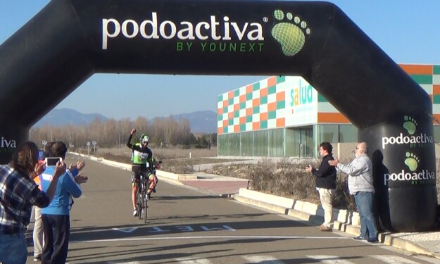 Óscar Puyuelo, bajo la pancarta de meta © radiohuesca