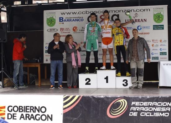 Ismael Pascua (Verde Teruel) y Pablo Merino (Lasaosa Productos Químicos) saltaron a 3 kilómetros de meta y supieron administrar una distancia suficiente como para jugarse al sprint el título aragonés. Nada pudo hacer el quinteto perseguidor para darles alcance, donde el más beneficiado fue Adrián Martín (GMC-CC Zaragozano), que también subió al podio regional como tercer aragonés clasificado.