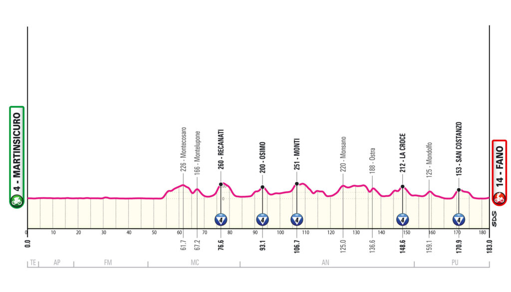 12ª: Jueves 16 mayo. Martinsicuro (12:30)-Fano (17:05), 183 kms
