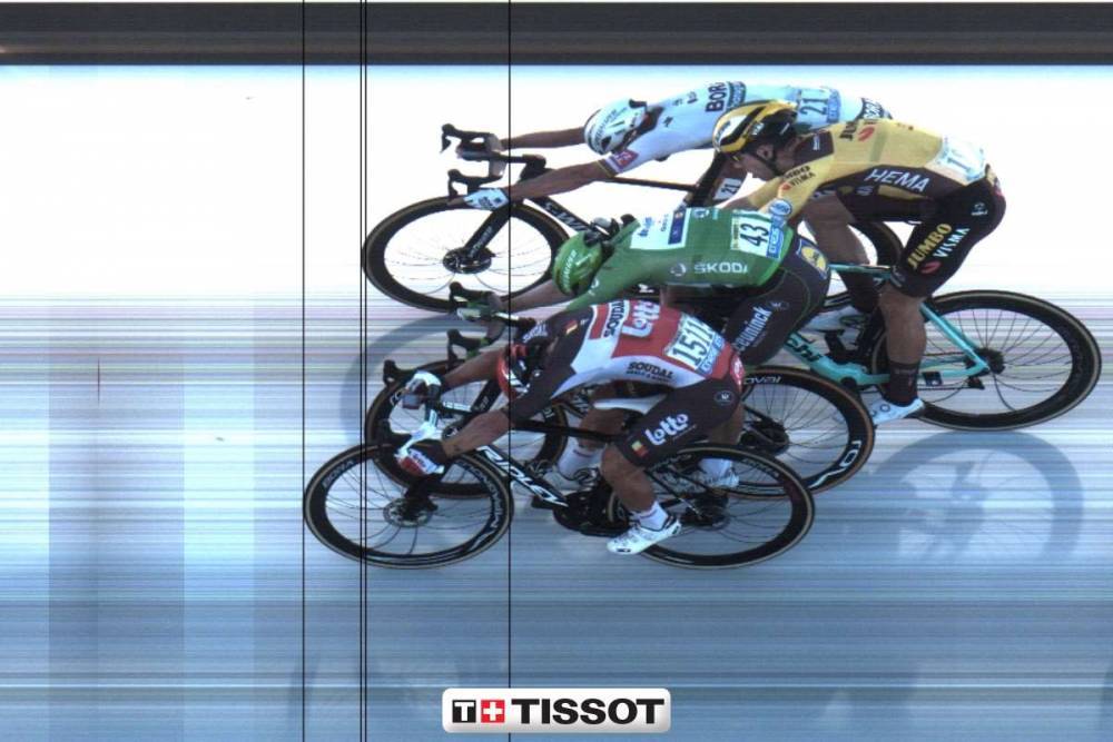 Wout Van Aert: «Estaba un poco lejos en la última recta y de repente vi el espacio a la derecha. Empecé temprano porque de otra manera quedaría atrapado. Eso fue un poco demasiado lejos para el sprint perfecto: 300 metros con viento en la cabeza y ligeramente cuesta arriba, eso es demasiado bueno para mí también. La posición no puede ser perfecta siempre. Ciertamente podría haber ganado hoy, porque tenía buenas piernas en el sprint. Me sorprendí mucho cuando Sagan me hizo a un lado y perdí mi impulso. Sí, reaccioné enojado. Ya es bastante peligroso, y cuando te esfuerzas tanto, no sabes lo que pasa. Entonces es normal cuando reaccionas así. Intenté hablar con él después, pero me pareció muy extraño que me devolviera la capa completa. He reexaminado las imágenes y en lo que a mí respecta tienen que desclasificar a Sagan (declaraciones antes de su sanción). Corro en una línea. Es mi derecho porque yo empecé primero. Si intentas crear espacio de tal manera que no tiene nada que ver con el sprint. Si el jurado lo permitiera, no seguirían las reglas». © Sporza