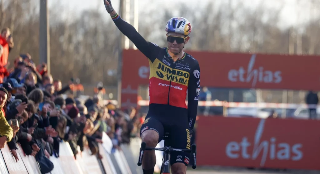 En otra tremenda exhibición, el belga Wout Van Aert ha destrozado a todos sus rivales en la décimo segunda prueba de la Copa del Mundo en Zonhoven (Bélgica). Nadie, ni siquiera Van der Poel, ha podido inquietar el triunfo del corredor local, que sigue demostrando estar dos pasos por delante del neerlandés, que hoy, además, sufrió dos caídas que le restaron opciones pues, tras la segunda de ellas, es cuando aprovechó Van Aert para marcharse en solitario.