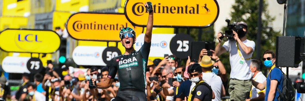 Bora pasó de las caras compungidas en la salida por la baja de Peter Sagan al jolgorio de la meta con el estreno en las grandes vueltas de Nils Politt. El alemán se puso el traje de líder del grupo de Ralph Denk y fue el justo vencedor de la fuga del día que se generó tras unos primeros abanicos. Supo estar primero en el corte y fue el doble atacante para llegar solo en la romana Nîmes. Fue el primero en romper la escapada llevándose a rueda a Erviti, Sweeny y Küng y con otra andanada que le sirvió para irse definitivamente en solitario y rematar la jugada a lo grande ante la pasividad del pelotón del líder Pogačar, que se tomó un día de asueto prepirenaico.