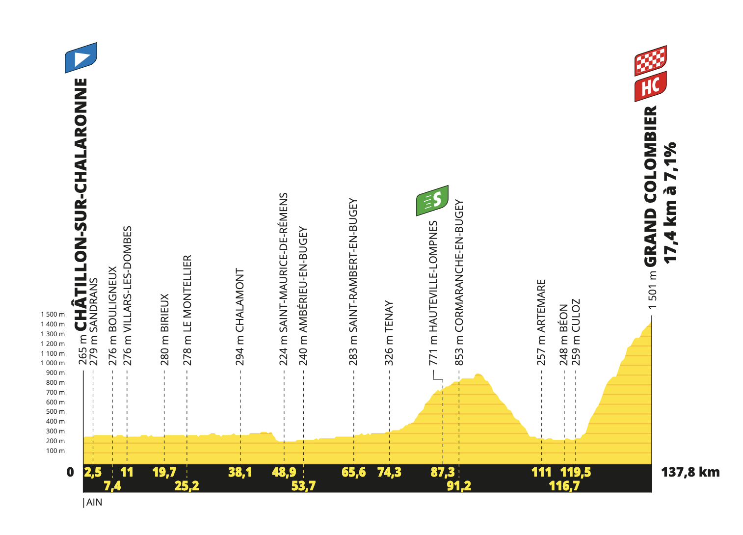 13ª: Viernes 14 julio. Châtillon-sur-Chalaronne – Grand Colombier (138 km)