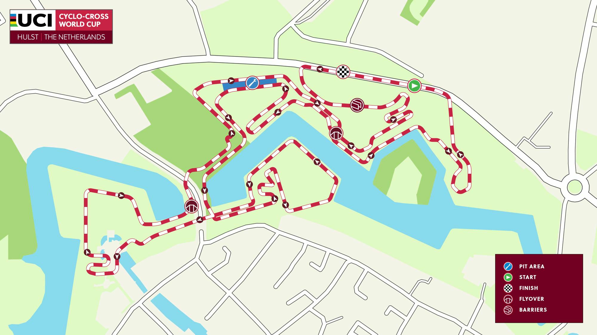 El circuito en Hulst se notó que era bastante diferente a otros disputados en este Mundial. Muchas pendientes en un terreno en el que predominaba el barro, aunque esto es habitual en cualquier prueba de ciclocross. A destacar una pendiente larga y muy pronunciada que las ciclistas tomaron nota la primera vez que pasaron por ella para hacerlo mejor en las siguientes vueltas. En ese aspecto destacó la zancada de Van Empel para marcar diferencias.