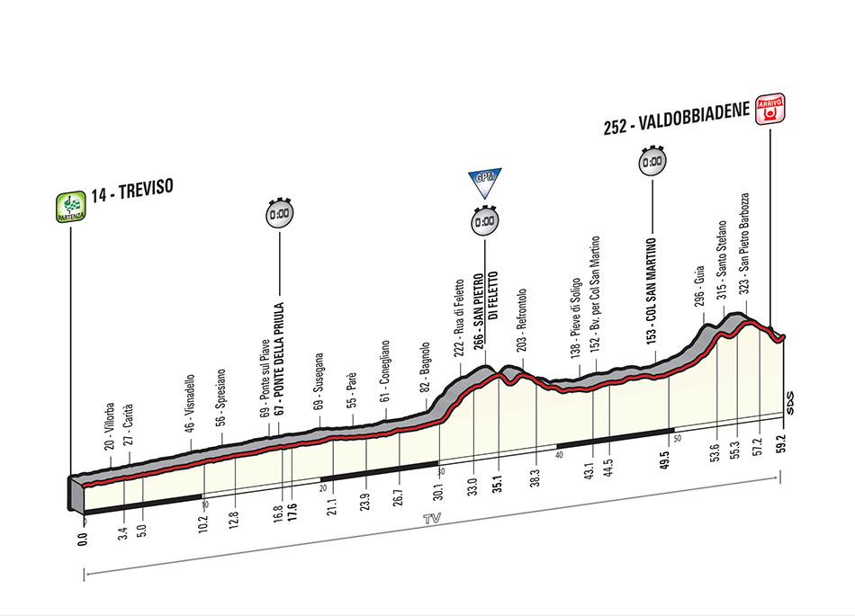 Una situación también inesperada para la jornada clave de este sábado. La eterna contrarreloj individual con final en Valdobbiadene -que ya reconoció Contador en su día- y que afrontará -con previsión también bajo el agua- casi sin querer Aru desde la última plaza, con esa ventaja que dicen de tener todas las referencias confirmadas. Casi 60 kilómetros que pueden dar lugar a diferencias de minutos entre los primeros y que mañana se publique una general provisional totalmente diferente y posiblemente con un nuevo portador -Contador la podría recuperar perfectamente y deshacer su empate con Tarangu Fuente- en el podio. Una ocasión de oro para que el colombiano Rigoberto Urán -hoy atento y si recupera sensaciones- o el propio Darío Cataldo -gregario de Aru- remonten posiciones, tiempo y quién sabe si algo más precioso. Y un día importante también para Mikel Landa -también cortado-, a 1:14 de su compañero rosado, que deberá reprogramar sus funciones en virtud de cómo salga en la general.