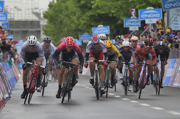 1ª (Orica) / 2ª (Viviani) / 3ª (Matthews) / 4ª (Formolo) / 5ª (Polanc) / 6ª (Greipel) / 7ª (Ulissi) / 8ª (Intxausti) / 9ª (Tiralongo) / 10ª (Boem) / 11ª (Zakarin) / 12ª (Gilbert)
