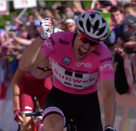 Tom Dumoulin: «Realmente no me lo esperaba, es algo que siempre había soñado pero no pensé que podría hacerlo. Ha sido una subida muy dura y cuando no pude seguir a Quintana seguí relajado y a mi ritmo. Al final todavía me quedaban fuerzas y ha sido increíble. Es muy positivo ir a la última semana con esta ventaja pero vamos a ver cómo van las cosas, porque la última semana será muy diferente. Sigue quedando mucho camino hasta Milán».