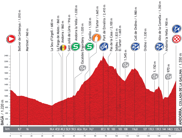 Este sábado 7 de de septiembre llega la montaña pireanica con la disputa de la décimocuarta etapa de la Vuelta a España entre Bagà y la cima de la Collada de la Gallina en Andorra, sobre 155,7 kilómetros. Primera de las dos etapas de la carrera que terminan en asfalto extranjero y primera de las tres con finales en la cordillera fronteriza. La Vuelta regresa a uno de los escenarios más espectaculares de la edición de 2012. El entonces inédito puerto de la Collada de la Gallina permitió ver una de batalla atractiva entre Valverde, Joaquim Rodríguez y Contador. El líder de Movistar se impuso en un final apretado a ‘Purito’ y al posterior ganador de la Vuelta. Una jornada en la que también se superará el puerto de Envalira, que con sus 2.409 metros de altitud, será la cima Alberto Fernández en esta edición de la Vuelta.