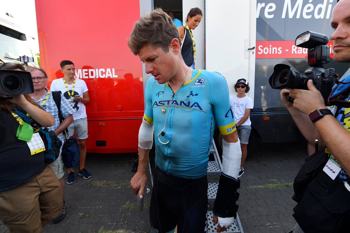 Jakob Fuglsang (abandono sin fracturas): «Estoy muy decepcionado por dejar el Tour de Francia de esta manera, pero tenía demasiado dolor para continuar. Alguien se estrelló contra mí y no hubo forma de evitarlo, así que impacté sobre mi manillar. Mi mano se tragó directamente y apenas podía pararme sobre mis pies. Sabía directamente que mi Tour terminaba ahí. Estaba muy motivado para la última semana y estaba listo para luchar por una posición más alta en el general. Que ésta sea la forma de perder esta batalla, es muy decepcionante. Ahora todo el foco estará en la recuperación, tanto física como mentalmente, porque el Tour era un gran objetivo después de mis victorias en Liége y el Dauphiné».