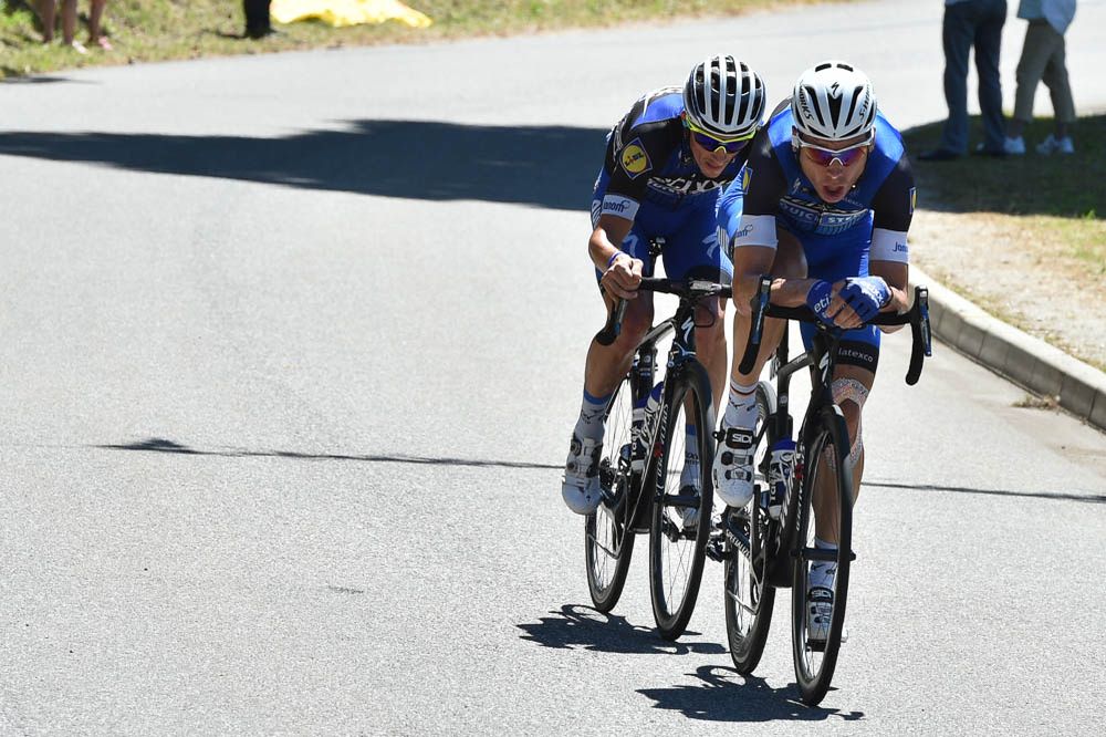 Una jornada marcada por la larga fuga de la pareja del Etixx belga compuesta por el alemán Tony Martin y el francés Julian Alaphilippe -designados ex aequo los más combativos del día- que terminó a 22 kilómetros de la meta de Berna. Por detrás, numerosos corredores trataron de salir al contraataque como Timo Roosen (Lotto NL), Lawson Craddock (Cannondale), Pierre-Luc Périchon (Fortuneo) y Nicolas Edet (Cofidis) por detrás. Misión imposible.