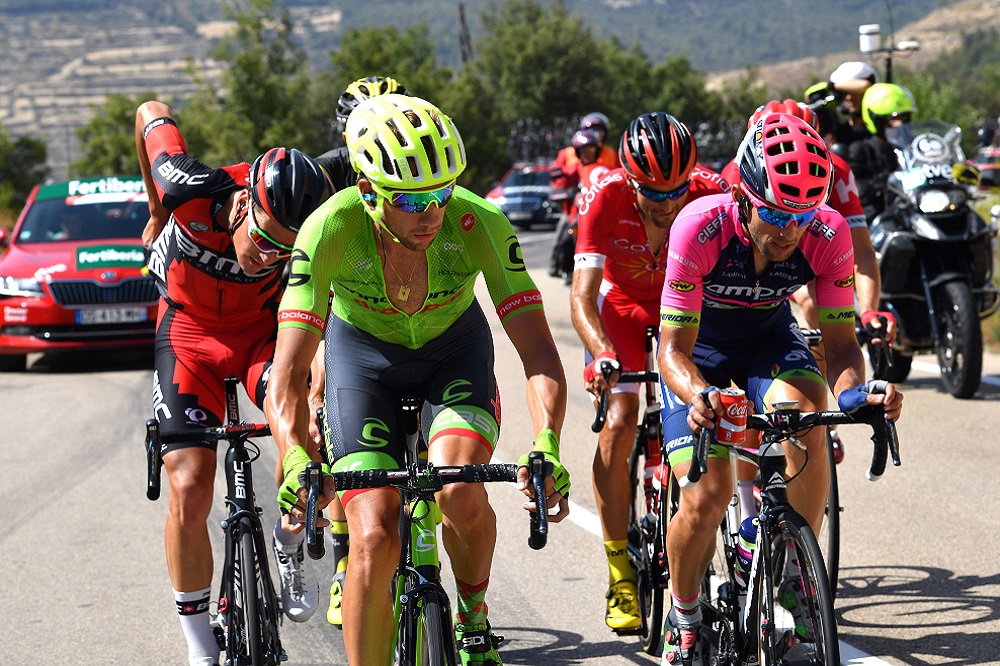 Alberto Contador: El jefe de filas del equipo Tinkoff destacó el “calor impresionante” sufrido durante toda la etapa. “Durante la última parte íbamos bajando todo el tiempo y aun así se notaba el calor”. En cuanto a la polémica de las últimas 24 horas, Contador se desmarcó diciendo que “son otras historias. A nosotros, ahora, nos toca pensar en la carrera y ya está”. Contador, además, ya dejó ver en los pasado días que en su opinión se pueden esperar grandes desfallecimientos en esta tercera semana y preguntado sobre si podrá aprovecharse de esas circunstancias reflexionó que “sí puedo pescar en el río revuelto, pero el problema es que a mí no me dejan mucho margen. Así que lo único que me planteo es ir viendo el libro de ruta día a día y ver hasta dónde puedo subir”.
