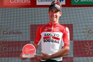Jelle Wallays (Lotto-Soudal), ganador de la 18ª etapa: “Todo el mundo esperaba hoy una llegada al sprint. Pero hoy era una de las tres etapas que tenía marcadas, la que tenía en mi mente después de la caída que sufrí después del primer día de descanso. Sabía que me sentía bien y que podría sorprender a muchos corredores, y hoy lo he demostrado. Cuando hemos formado la escapada, hemos estado de acuerdo en apretar en los últimos 35 kilómetros, ya que el pelotón jugaría con nosotros todo el día. Sé que Bystrom puede sprintar bien. Había una pequeña subida en el final, y con 25 segundos de margen con 2 kilómetros para llegar, he decidido mantenerme a su rueda. He esperado y esperado, no tenía miedo a perder. Ya estaba contento por haber llegado al último kilómetro. Me he centrado solamente en la línea de meta y me he lanzado a 200 metros de la meta. La primera vez que gané desde la escapada fue en la París-Tours (en 2014) y aprendí mucho de Thomas Voeckler ese día. Trabajé mucho para ser seleccionado para el Tour de Francia, y al saber que no entraba me centré en ganar una etapa en La Vuelta, y lo he logrado. Es fantástico”