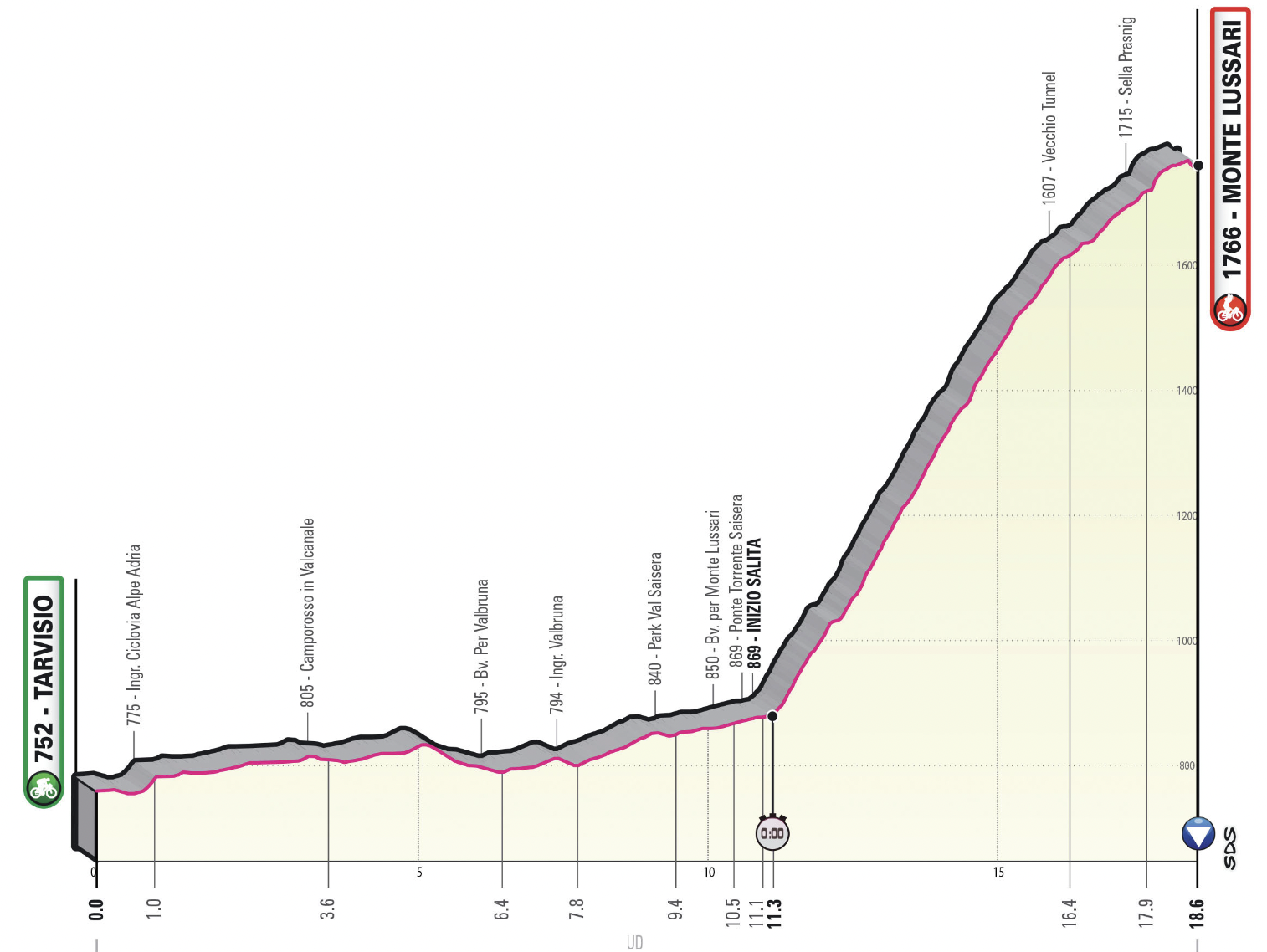 20ª: Sábado 27 mayo. Tarvisio – Monte Lussari (Cronus) 18,6 kms (cronoescalada)