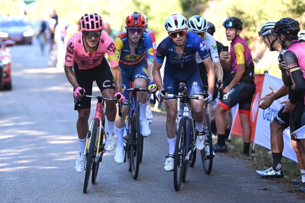 Y esas otras vías, a saber, podrían ser por ejemplo que Carapaz mire a Mas y Mas mire a Carapaz, y aquí nadie mueva un dedo. Ah, es tu problema, ah, no, no, mira a ver si es el tuyo, campeón, y cosas así. Me podría valer. O que alguien, con más chicha en ese momento, no sé, Gaudu, que parecía tener más piernas hoy, estuviera encerrado o, tampoco es raro, esperara la respuesta del ecuatoriano y el balear antes que darla él. Podría ser. Pero lo que pinta, lo que realmente parece, es que entre unos y otros la casa sin barrer y el esloveno, haciendo marcha.