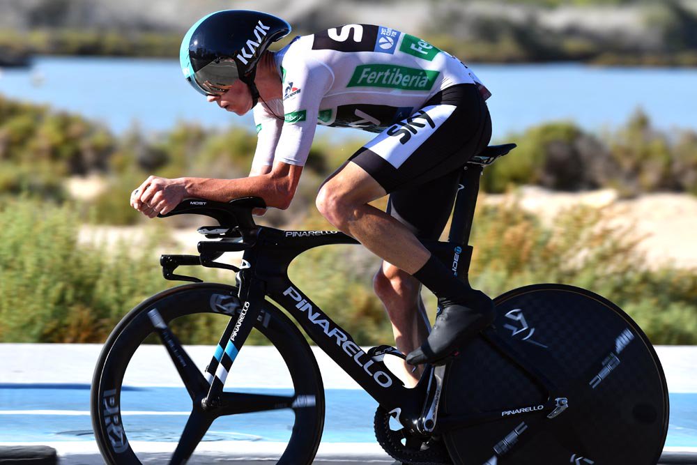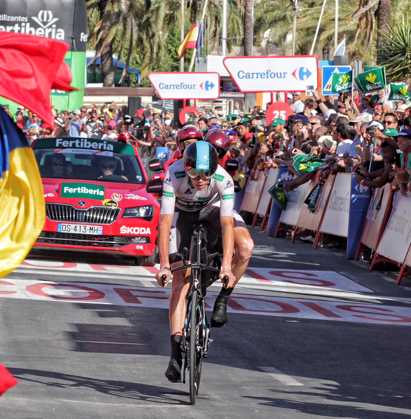 Dicen los que saben de eso que entre la genialidad y la locura hay una línea fina, muy fina. Tan fina que la mayoría de nosotros no sabríamos distinguir un genio de un loco si nos lo pusieran delante. Tan fina, decíamos, que la diferencia entre una y otra suele estar marcada por lo único objetivo que suele venir parejo a ellas: el éxito o el fracaso. Chris Froome (Sky) podrá vivir mañana esa sensación. Al menos, eso se espera de él. Hoy ha sido, sencillamente, un genio de la lucha contra el reloj. Su rodar entre Xàbia y Calp se puede definir, seguramente de muchas maneras: elegante, ágil, rápido, seguro… pero todo ello se resume en la palabra genial. Porque hoy, 9 de septiembre, en pleno otoño de la temporada, su contrarreloj ha rozado la perfección. No era el terreno ideal para los grandes especialistas. Repechos y curvas impedían que se desarrollara sobre sus 37 todo el potencial de los grandes especialistas, pero eso no fue un problema para el hombre de Sky que a todo lo hecho esta temporada suma ya los 3.017 kilómetros disputados en la ronda española y que mañana, de manera descarnada y brutal, cerrarán una temporada en la que sólo una locura –como la que ya protagonizó Contador el domingo en Formigal– podría hacerle alcanzar la genialidad del doblete soñado.