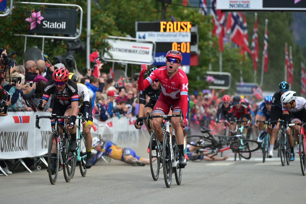 Que el Arctic Tour of Norway (2.HC) iba a ser un duelo a cara de perro entre algunos de los mejores velocistas del panorama internacional no era ningún secreto esta mañana cuando se puso en marcha la cuarta edición de esta todavía joven carrera, pero lo que sí podría calificarse de sorpresa, aunque sea relativa, es el gran resultado obtenido hoy por el alemán John Degenkolb (Giant-Alpecin), que se quedó a pocos milímetros de anotarse su primer triunfo después de aquel terrible accidente sufrido durante su concentración de pretemporada en Calpe, pero que finalmente tuvo que rendirse ante un Alexander Kristoff (Katusha) que fue, una vez más, profeta en su tierra y suma su sextro triunfo parcial en la carrera de su tierra.