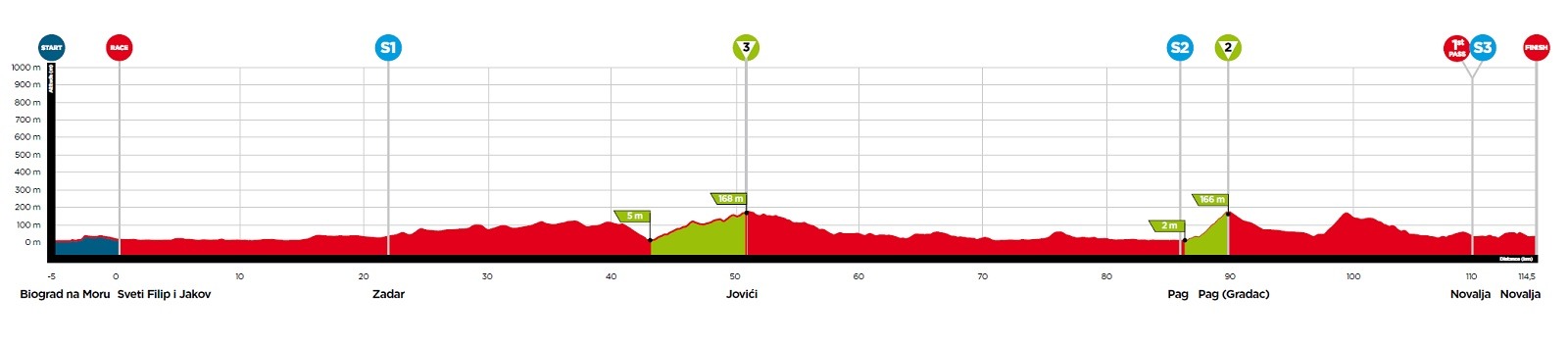 2ª: Miércoles 2 octubre. Biograd na Moru (14:16)-Novalja (16:45), 114,5 kms