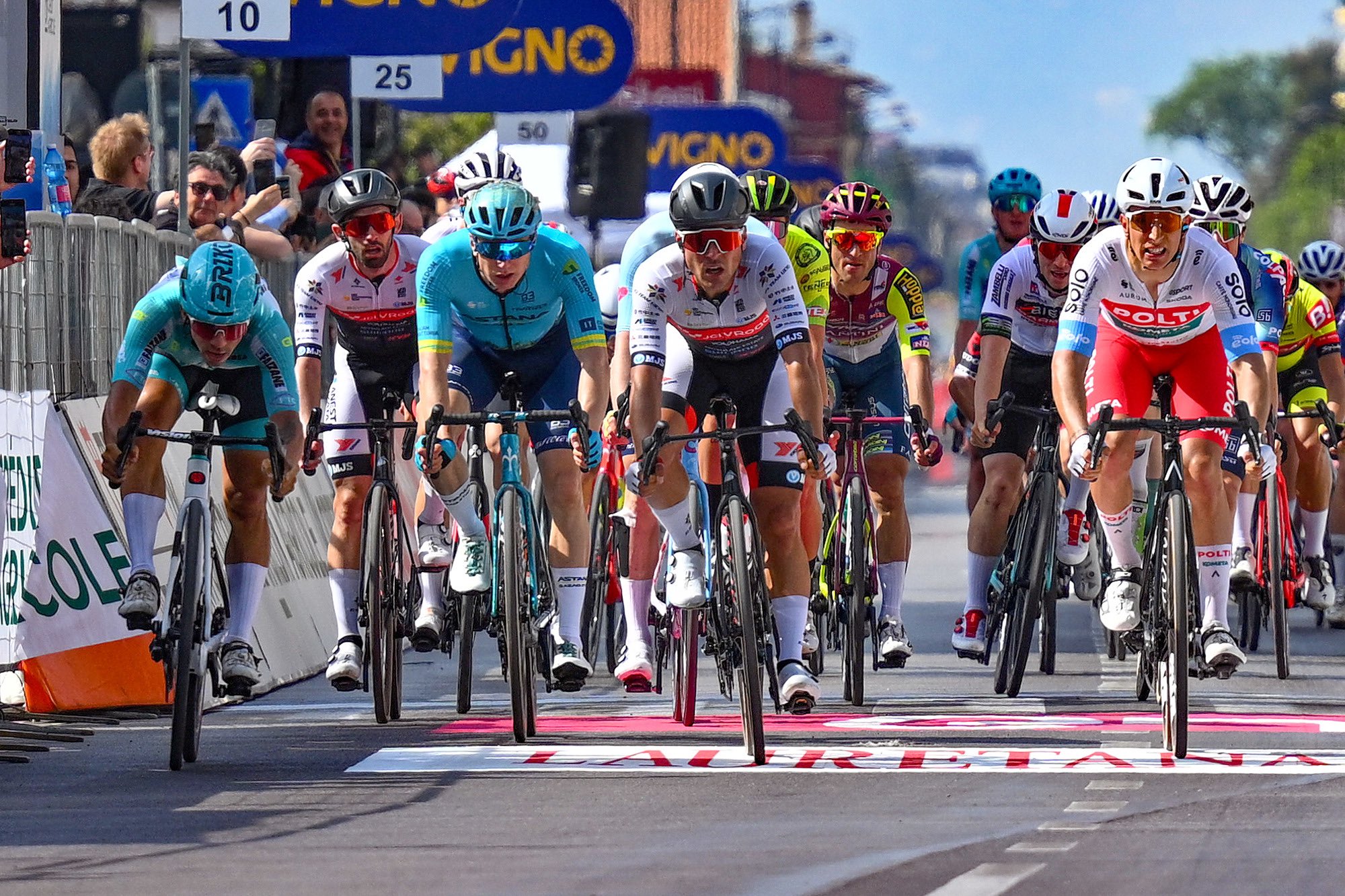 Ciclistas de la talla de George Bennet, Pavel Sivakov, Sebastian Reichenbach y Valerio Conti se marchaban por delante uno detrás de otro. También aceleraría un grupo de cuatro ciclistas compuesto por Alexey Lutsenko, Giovanni Carboni, Diego Ulissi y el anteriormente fugado Filippo Magli. El último en probarlo fue Marco Brenner, ya dentro del kilómetro final. Primero Polti y después Astana prepararon la llegada, pero no fueron sus ciclistas los encargados de rematar, sino Malucelli y Zanoncello, apareciendo este último junto a las vallas para lanzar la bici ligeramente por delante de su compatriota y lograr así el primer maillot de líder de una carrera que no se disputaba desde 2007.