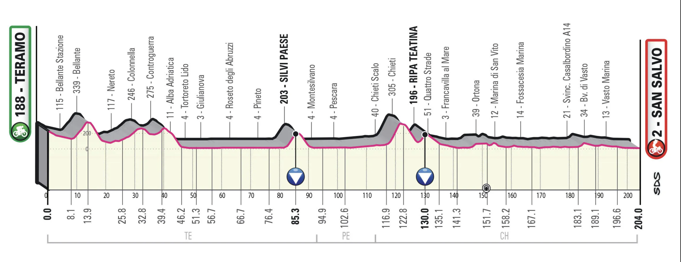 2ª: Domingo 7 mayo. Teramo (12:30)-San Salvo (17:15), 204 kms (llana)