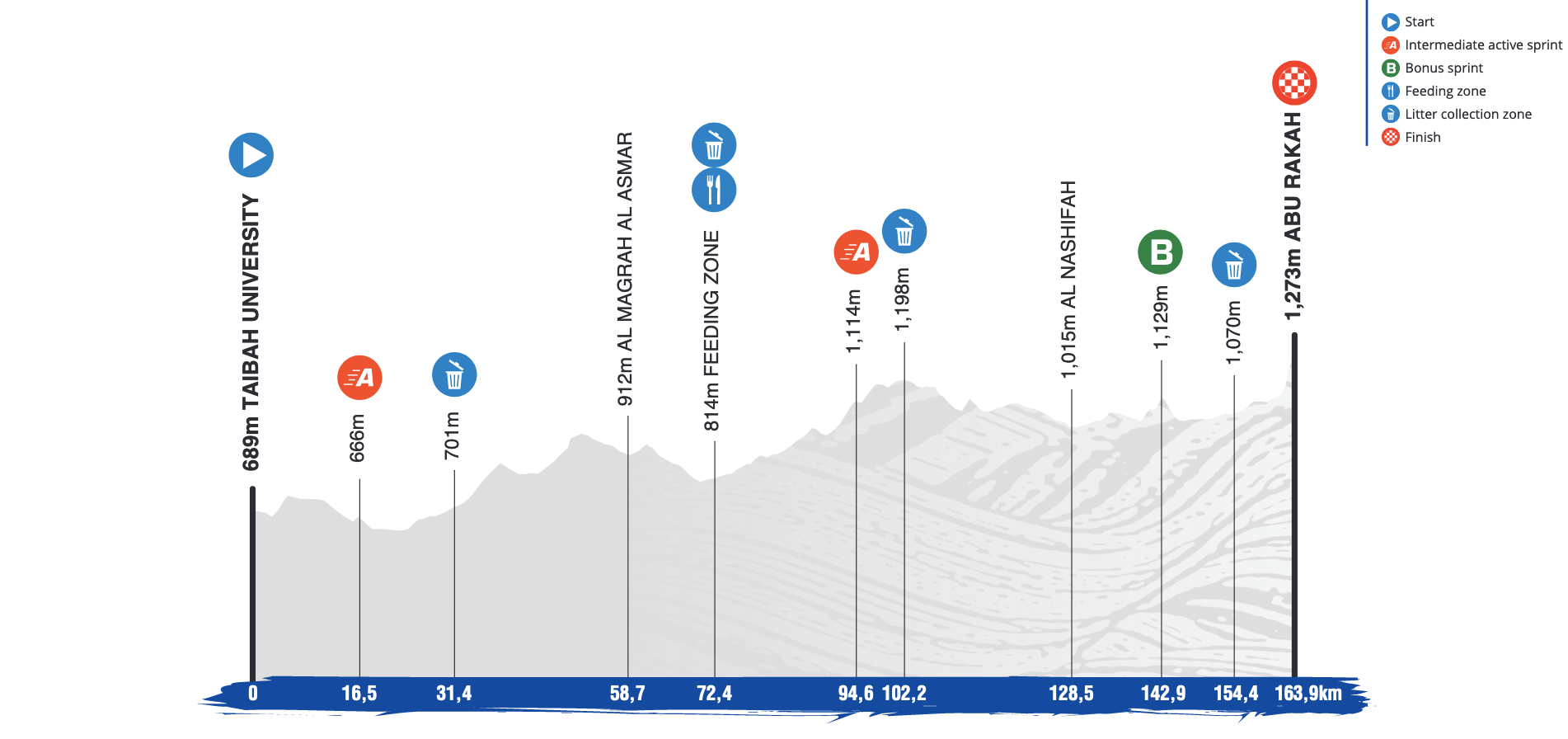 El terceto de protagonistas mantuvo una renta de entorno a los tres minutos durante gran parte de la etapa. El ciclista asiático fue el primero en descolgarse y sus dos compañeros, pese a ser absorbidos por el pelotón poco después, volvieron a lanzarse al ataque. Este segundo intento fue controlado a apenas 25 kilómetros del final, poco antes del tramo de tierra. En los últimos compases de la prueba lo probó Yousif Mirza (UAE), pero no pudo cambiar el desenlace final. Ewan vestirá el primer maillot rojo de líder en la próxima jornada, con final en Abu Rakah, llegada con rampas ascendentes que complicará la pelea por la victoria a los velocistas.
