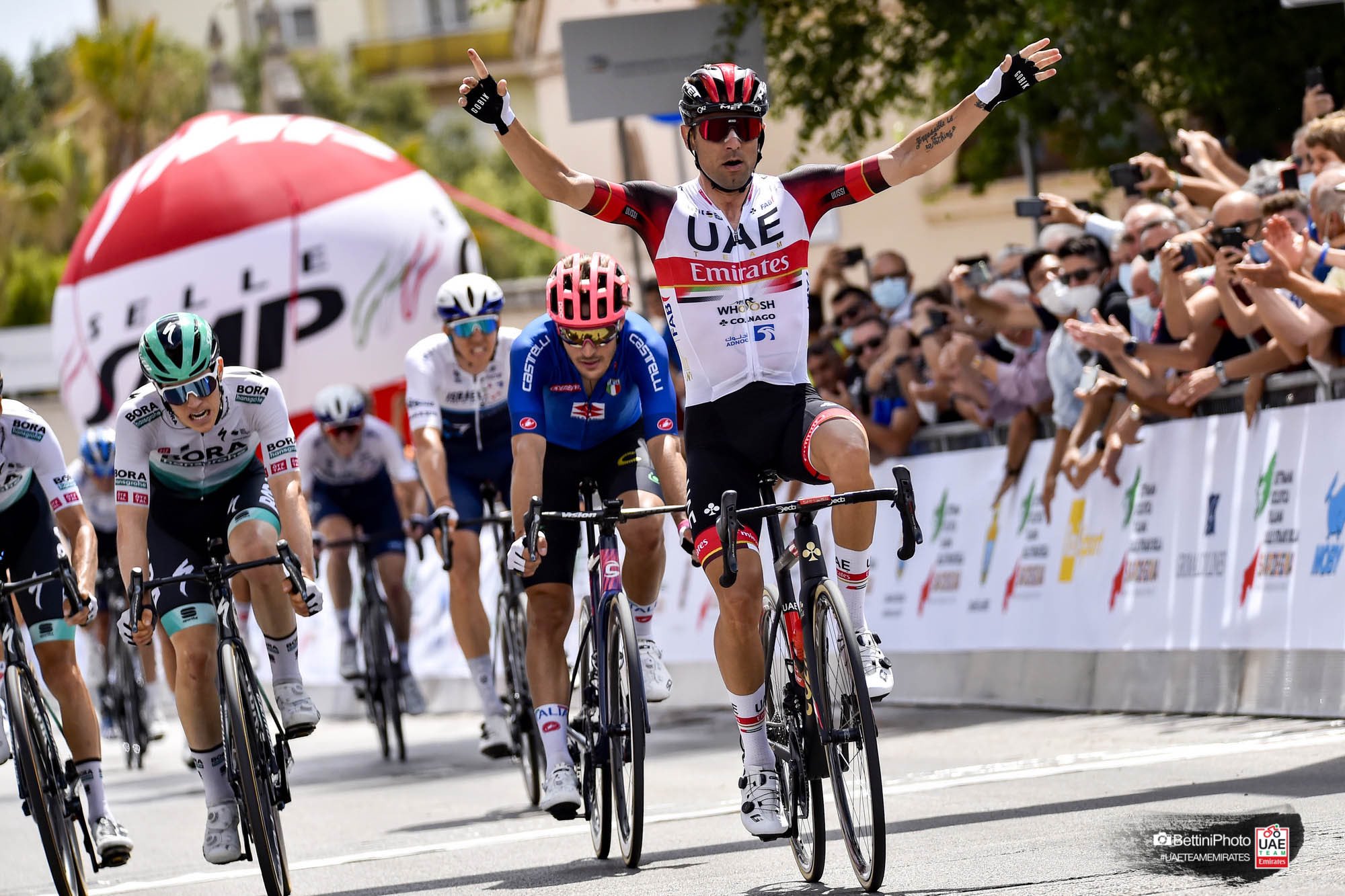 Diego Ulissi sigue prolongando el momento dulce del UAE –doblete con Pogacar en el Tour de Francia– y pasando a la historia como el primer ganador de etapa y líder de la nueva semana Italiana son sede en la isla de Cerdeña. El italiano fue el mejor del selecto grupo que cazó la fuga del día 15 kilómetros del final sobre un recorrido rompepiernas.