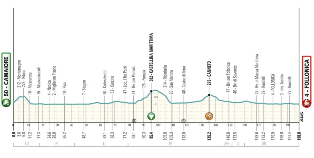 2ª: Martes 5 marzo. Camaiore (10:55) – Follonica (15:43) (198 km)