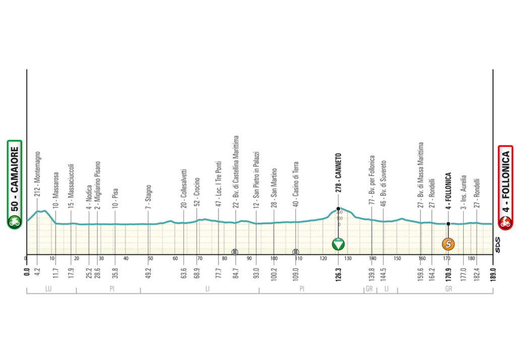 2ª: Martes 11 marzo. Camaiore (11:30)-Follonica (15:45), 189 km