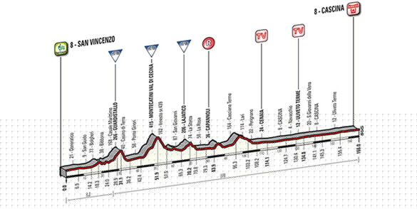 Este jueves, 2ª etapa y primera en línea entre San Vincenzo y Cascina sobre 166 kilómetros, ideal para los velocistas