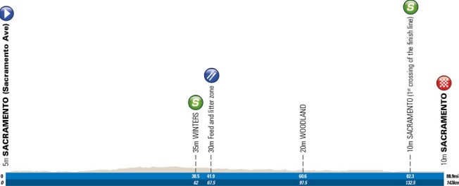 Sacrmento, capital del estado de California, acogió el arranque de esta 14ª edición de la ronda estadounidense con una etapa que tuvo a Michael Schär (CCC), Laurens De Vreese (Astana), Charles Planet (Novo Nordisk) y al jovencísimo Tyler Stites (EEUU) como protagonistas de la fuga del día.