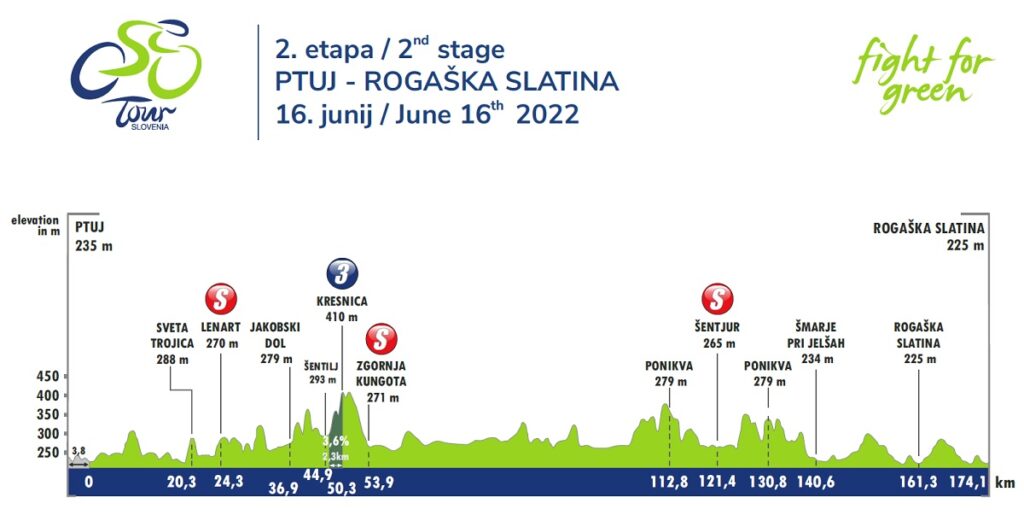 La jornada estuvo marcada por una escapada de seis corredores que no iba a tener una agradable aventura en suelo esloveno. Su intento de fuga se vino abajo demasiado pronto -a 60 km de meta- tras un fuerte ritmo en el pelotón impuesto por el bloque de Bahrain. En ese momento, los corredores se encontraban en la primera ascensión de la jornada. De golpe, 10 corredores saltaron del pelotón entre ellos Tadej Pogacar y Rafal Majka.
