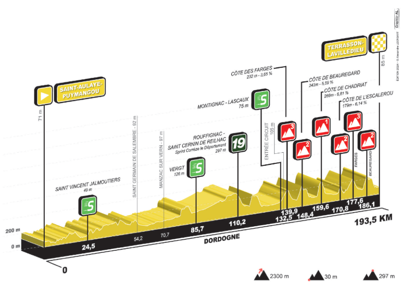 2ª: Miércoles 14 agosto. Saint-Aulaye-Puymangou (12:30) – Terrasson-Lavilledieu (17:05), 193,5 kms