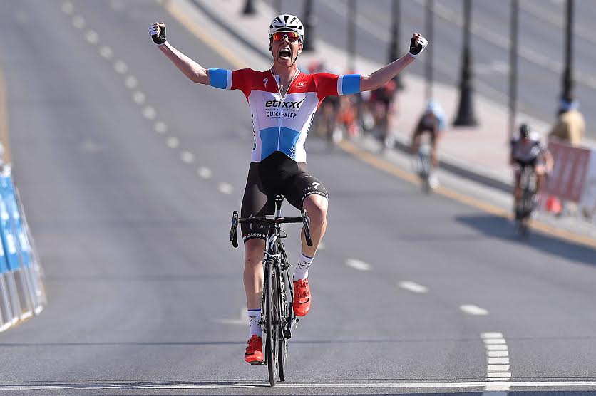 La última cima puntuable, a 4 kilómetros del final, seleccionó el grupo -tras anular la fuga del día- dejando en cabeza un grupo de 18 corredores entre los que no estaban el australiano Richie Porte o el noruego Alexander Kristoff. A 2 kilómetros del final Bob Jungels soltó su ataque final que le valió para ser el primer líder de la previsible última edición de la prueba arábiga.