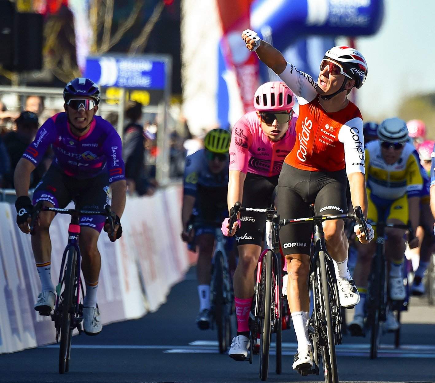 El desenlace en formato de llegada masiva se gestó a apenas 3 kilómetros de meta cuando fue neutralizado el más insistente del trío fugado Valentin Ferron (TotalEnergies) que dejó a sus compañeros Maël Guégan (CIC U Nantes Atlantique) y Johan Meens (Bingoal) cuando sentía el aliento del pelotón. El trabajo del EF Education -con el esperado regreso diez meses después de Michael Valgren– fue bueno, pero Coquard aguó la fiesta de Van den Berg, ganador en la Challenge de Mallorca en Alcúdia.