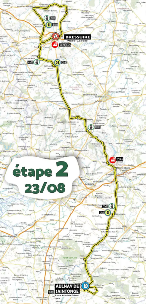 2ª: Miércoles 23 agosto. Aulnay (11:15)-Bressuire (15:20), 187 kms