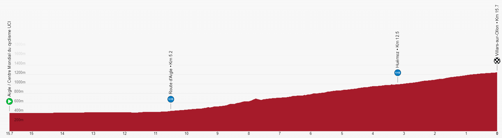 2ª. Domingo 16 junio: Aigle / Centro Mundial de Ciclismo UCI – Villars-Sur-Ollon (15,7 Km)