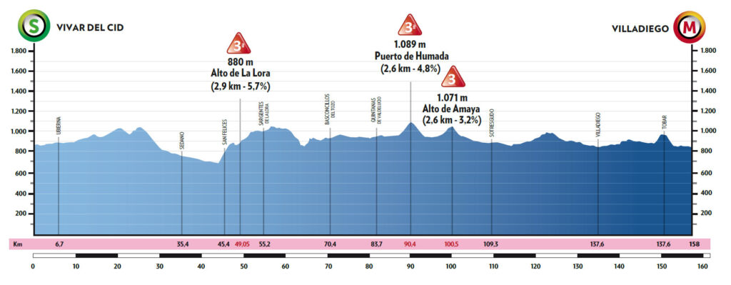Inmediatamente el pelotón llegó a la primera rampa, y allí saltaba un peleón Raúl García Pierna que abría un pequeño hueco. Coronó el primer paso en la primera posición, pero no pudo continuar con su aventura en solitario. Vincezo Nibali lideraba el descenso – una de sus especialidades- y daba caza al joven corredor español. Todo se decidiría en el último kilómetro, en plena ascensión por segunda vez en el día del Alto del Castillo. Santiago Buitrago lanzó su ofensiva a 450 metros de meta, sin encontrar la respuesta de ninguno de sus rivales. Nadie pudo con el ritmo del colombiano que cruzó la meta con tres segundos de ventaja respecto a Rubén Guerreiro (2º), que fue de los pocos que hizo el amago de saltar al ataque del de Bahrain. Para entender la magnitud de la victoria, hay que hacer especial hincapié en el tercer, cuarto y quinto clasificado de la jornada. Tres ganadores del Giro de Italia como Tao Geoghegan Hart (3º), Jai Hindley (4º) y Vincezo Nibali (5º), no pudieron hacer nada ante la potencia que demostró el colombiano. Alejandro Valverde y Mikel Landa llegaron a 50 segundos.
