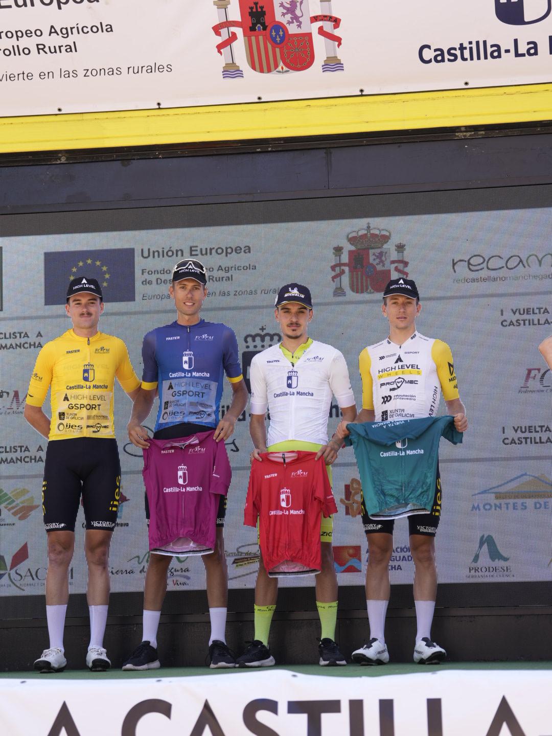 El primer maillot de líder rojo carmesí de la Junta de Castilla-La Mancha corresponde a Miguel Moya (High Level Gsport); al igual que el maillot verde por puntos. El primer rey de la montaña con el maillot rojo es Adrián Fajardo (Vigo Rías Baixas); el líder de las metas volantes con el maillot amarillo corresponde a Pau Domenech (High Level Gsport); mientras que el líder de la clasificación sub-23 es Adrián Fajardo (Vigo Rías Baixas). El mejor castellano manchego tras la etapa inicial, con el maillot azul, es el líder Miguel Moya.
