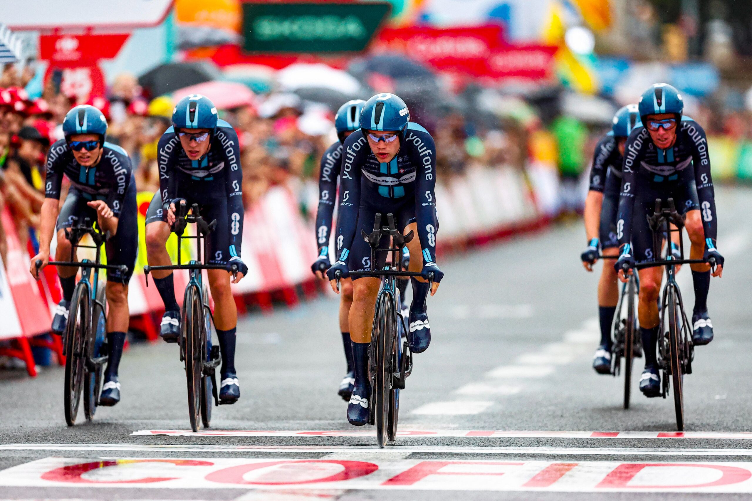 La fortuna estuvo de cara del equipo DSM que aprovechó su tempranero turno de salida -2º a las 18:59- para marcar el mejor tiempo en la línea de meta (17:30) en la contrarreloj por equipos que inauguraba La Vuelta España. Fue Lorenzo Milesi -campeón del mundo sub-23 en Glasgow-, el primer corredor de la escuadra neerlandesa en cruzar la línea de meta, convirtiéndose en el líder de la ronda española. La crono por las calles de Barcelona no fue del todo normal. Pocas veces en estas alturas del año, la lluvia hace acto de presencia en la Ciudad Condal. Pero hoy quiso hacerlo, dejando la carretera muy mojada y con el paso de los minutos, la visibilidad se convirtió en escasa.
