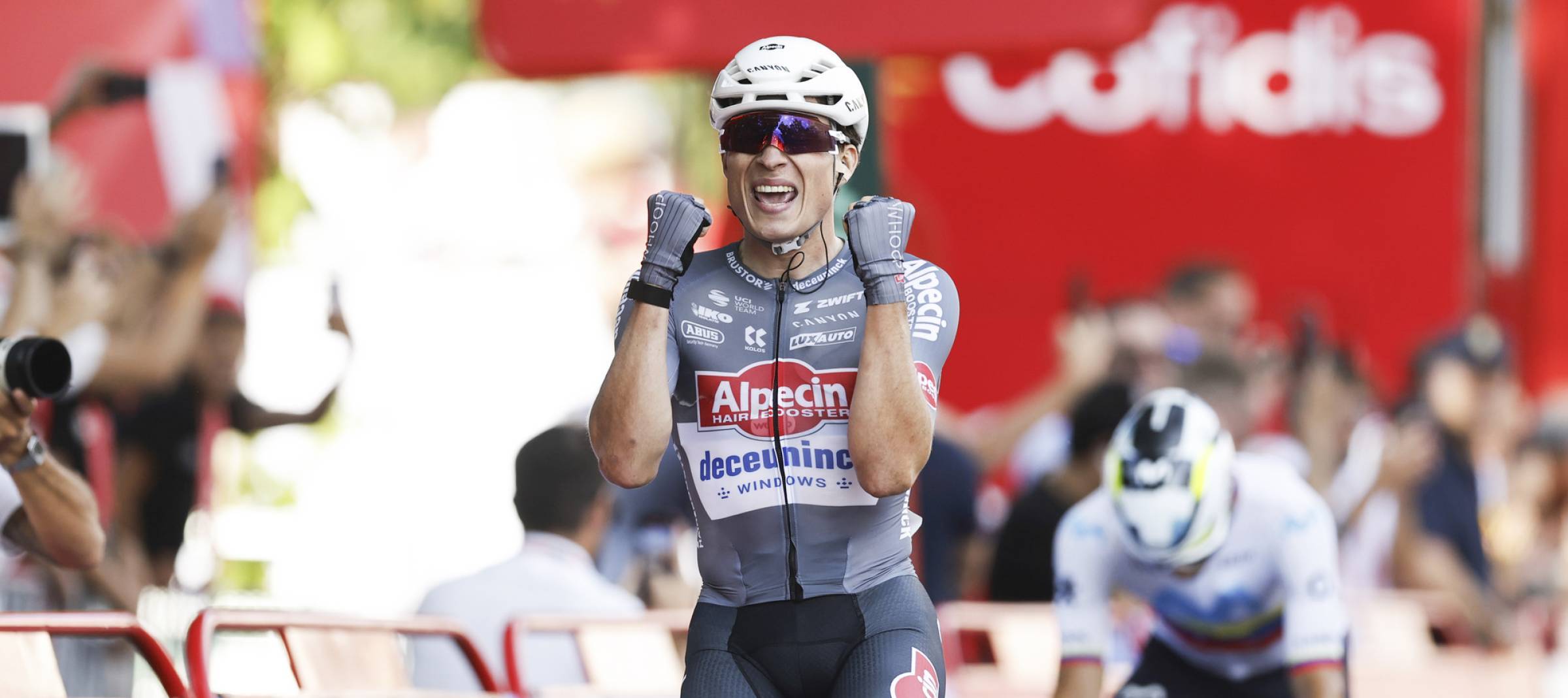 Jasper Philipsen: «Ganar siempre es bonito, y cuando hay un maillot en juego, es un plus. En el último kilómetro, como en el Tour, conseguimos coger el impulso que buscábamos. Mis compañeros volvieron a estar muy fuertes, y en el último kilómetro, Jonas Rickaert y Edward Planckaert lo hicieron todo a la perfección. Solo tuve que esprintar 150 metros, y estoy muy contento de que todo saliera como lo habíamos imaginado. Tras mi accidente en el Tour, me preocupaba mucho tener que retirarme. Había trabajado duro y era un gran objetivo para mi temporada. En ese momento, tenía que buscar otros, pero nunca es fácil después de un momento difícil, y este lo era, sobre todo teniendo en cuenta que no había muchas oportunidades. Así que este éxito tiene un significado especial».