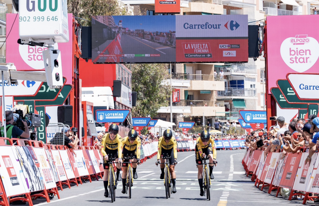 Mientras las miradas se posaban sobre SD Worx, Movistar y Trek para esta contrarreloj por equipos inaugural de la Vuelta España Femenina, la primera victoria de la carrera ha ido a parar al Jumbo Visma, que ha cruzado la línea de meta con un segundo de ventaja respecto al equipo Canyon de Kasia Niewiadoma, la favorita que sale mejor parada de Torrevieja, puesto que en el equipo neerlandés no hay ninguna corredora que opte, teóricamente, a la general final de la carrera.