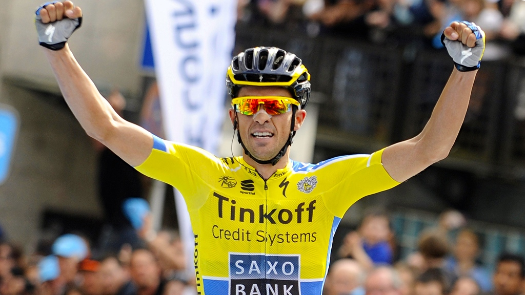 Alberto Contador ha ganado a lo grande de 1ª etapa de la Vuelta al País Vasco (2.UWT) con salida y meta en Ordizia sobre 153 kiómetros y 7 puertos de montaña, tras atacar en el último, el Muro de Gaintza, después de responder a un ataque de Alejandro Valverde y remachar al murciano en el último kilómetro de la subida.