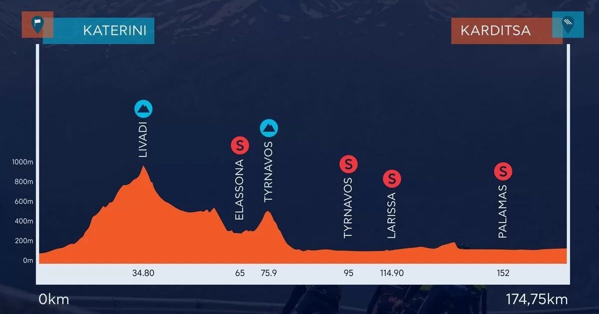 2ª. Jueves 16 mayo: Katerini (12:05)-Karditsa (16:10), 174,7 kms