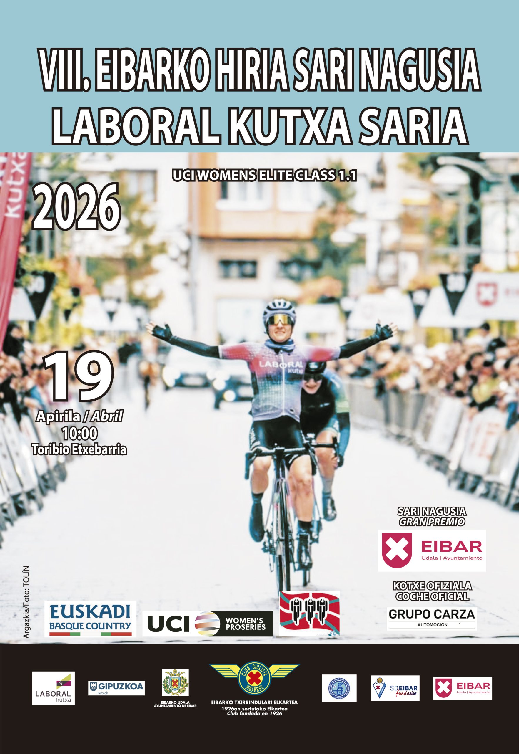 El domingo 19 de abril se celebra en la localidad de Eibar el VIII Gran Premio Ciudad de Eibar, de ciclismo femenino. El recorrido consta de 108,5 kilómetros y un desnivel importante, pues atraviesa cuatro puertos puntuables: Itziar (5 km al 4,2%), Meagas (2,5 km al 4,7%), Itziar (no puntuable), San Miguel (5,7 km al 5,1%) e Ixua (8,7 km al 4,9%). 70 corredoras tomarán la salida. Organizada por el Club Ciclista Eibarrés y con categoría 1.1, esta competición contará con once equipos en la línea de salida.