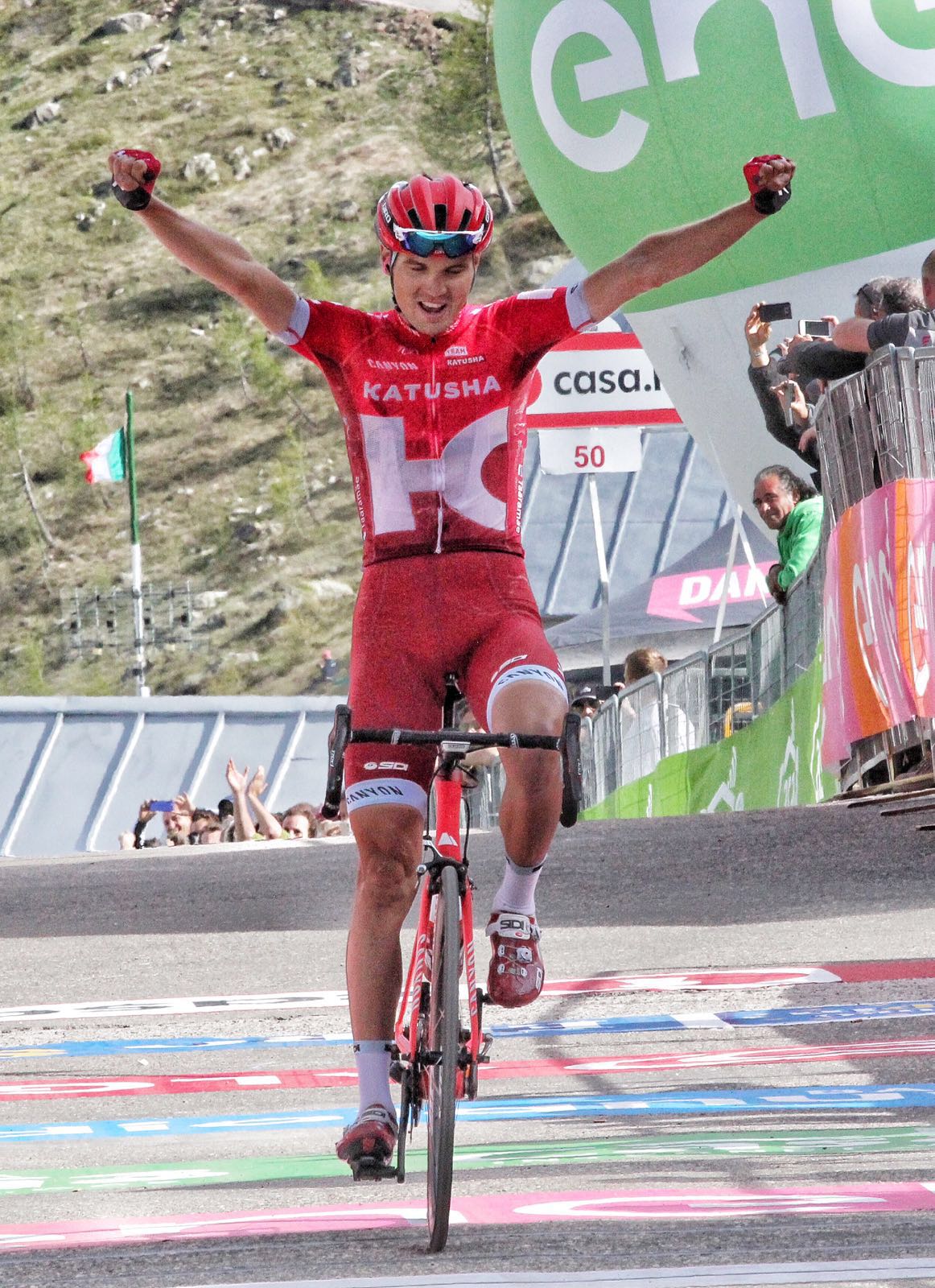 Finalmente, entró Nibali y los segundos empezaron a caer pesados y ruidosos en la meta de la cima de Sant’Anna di Vinadio. Toda Italia contenía la respiración junto a Nibali. Entró Valverde en meta y toda España hizo lo propio con el murciano. Había mucho en juego. Nada más y nada menos que un Giro. Todo un podio de un Giro. Un podio que, finalmente, volverá a coronar mañana Vincenzo Nibali, que ya lo hizo en 2013. Un podio que cerrará Alejandro Valverde que, a sus 36 años y en la primera oportunidad que se ha dado para ello, ya tiene un puesto de honor en las tres grandes. Un podio en el que Esteban Chaves, 5º el año pasado en la Vuelta a España, confirma las grandes sensaciones que dio en septiembre y se postula ya, sin ninguna duda, como una nueva joya de la aparentemente inagotable cantera colombiana que, poco a poco, sigue colonizando el que parece que será el futuro de las grandes vueltas.
