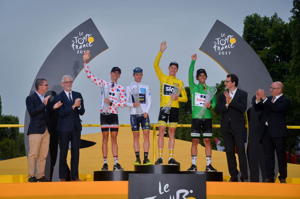 Chris Froome: «Es una sensación increíble. Los Campos Elíseos nunca decepcionan. Hay algo mágico al pasar tres semanas pensando en este momento. Es muy gratificante. Es increíble ver a mi esposa y mi hijo de nuevo después de tanto tiempo en la carretera. Cada vez que he ganado el Tour, ha sido único. Todas mis victorias son tan especiales. Éste será recordado como el más igualado y más duro. Es un gran honor ser mencionado en la misma frase que Jacques Anquetil, Eddy Merckx, Bernard Hinault y Miguel Indurain. Es un privilegio ir a a por esa cifra de cinco triunfos el año que viene».