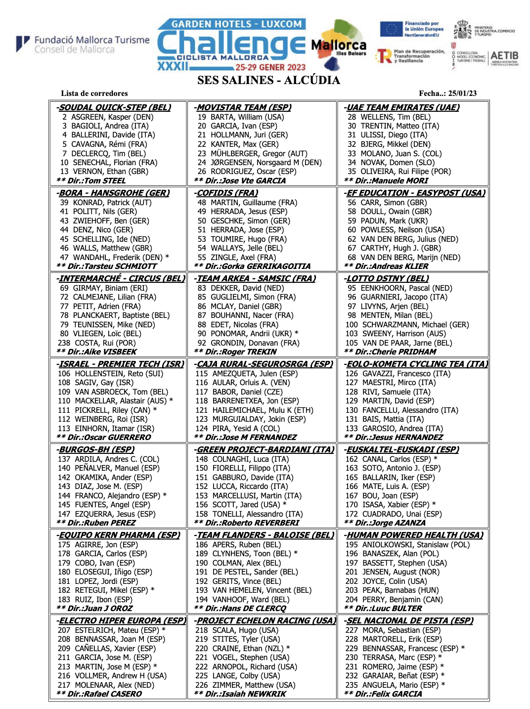 Y los naranjas fueron los únicos de los equipos españoles presentes en la fuga del día con el protagonismo de Luis Ángel Maté, quien a pesar de haber tenido problemas físicos este invierno y caerse en la primera cita, no dudó en meterse en vanguardia junto al otro neerlandés del EF, Van den Berg, Julius, el italiano Alessandro Fancellu (Eolo) y el continental estadounindense Colby Lange (Project Echelon Racing). Hasta 4:30 de vemtaja máxima les permitió un pelotón que no quiso desaprovechar la ocasión de generar una llegada masiva. El premonitorio apellido Van den Berg y Maté descolgaron a sus compañeros en las rampas de Sa Batalla, pero sabedores de que Intermarché -buscando su segundo éxito consecutivo- y UAE iban a por ellos hasta conseguirlo a 35 kilómetros del fnal cumpliendo el guion clásico de este tipo de carreras y sobre este escenario.