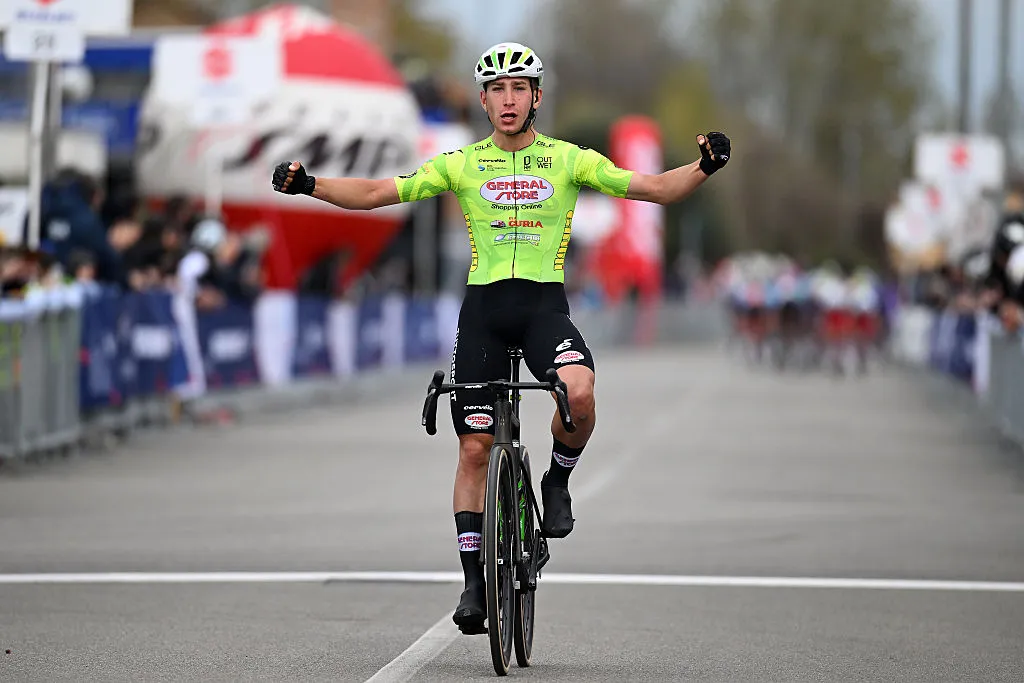 Filippo D’Aiuto se impuso en la línea de meta de Massalengo, llegada de la segunda etapa de la Semana Coppi y Bartali 2026 y es el nuevo líder destronando al francés Axel Laurance (Ineos). El ciclista portador de los colores dell equipo continental General Store atacó en solitario a falta de cinco kilómetros del fina para resistir la embestida del grupo. A sus 24 años, celebra la que es probablemente la victoria más importante de su carrera hasta ahora.